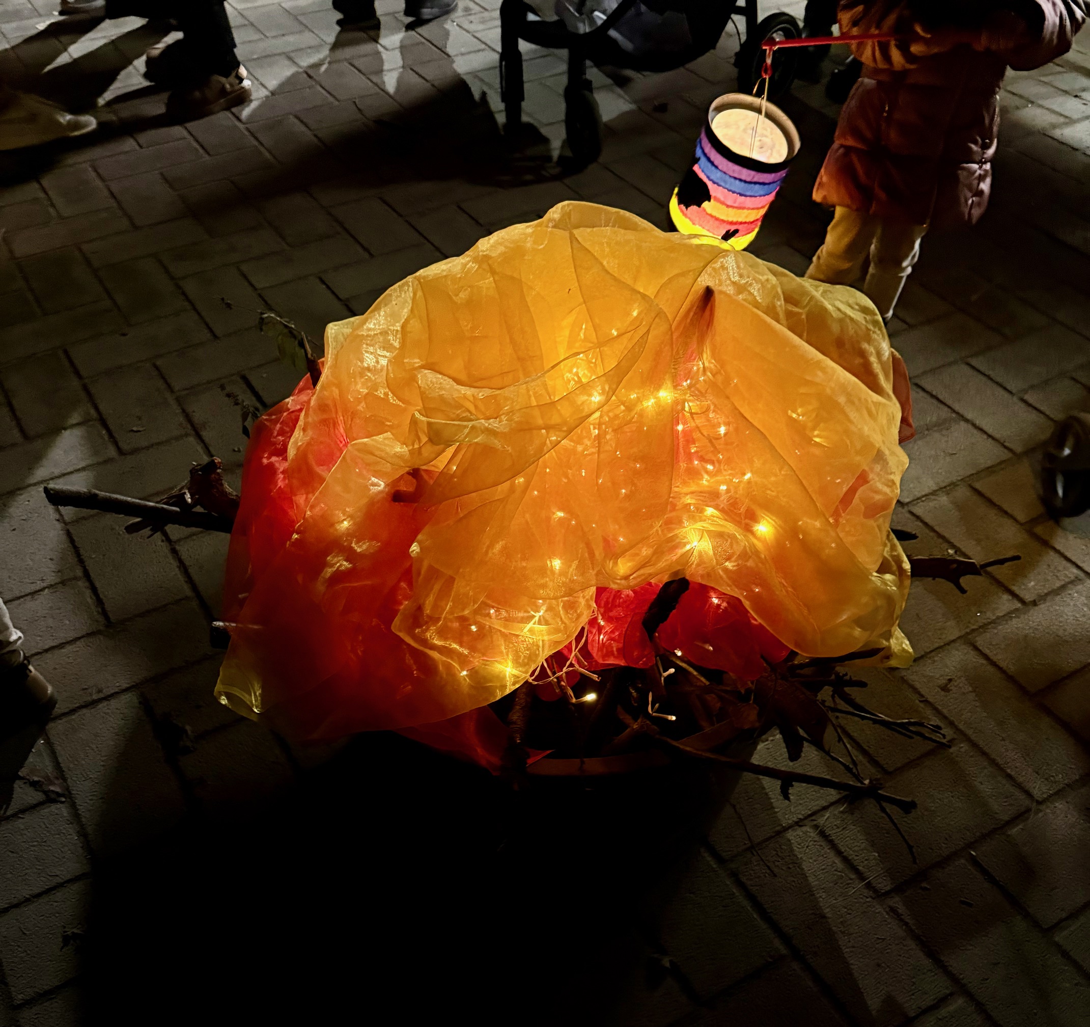 Unser diesjähriges Sankt Martin Lichterfest fand in einem liebevoll vorbereiteten, wunderschön leuchtenden Garten statt. Bunte Laternen sorgten für ein warmes Licht und in der Mitte schuf ein künstliches Feuer eine gemütliche Atmosphäre, in der sich alle gerne versammelten.